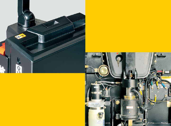 ●手柄頭部的緊急反向按鈕在向后行駛遇到緊急情況時(shí),能有效避免駕駛員受到傷害。