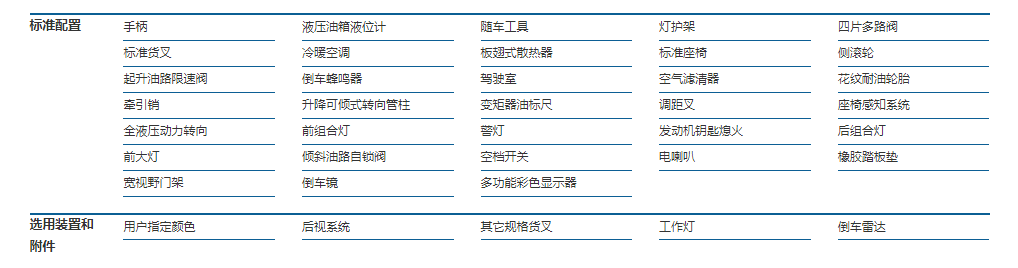 ●加寬的二級門架,增強門架抗扭性,視野開闊;雙限速閥油路,安全性更好。標配側移調距。